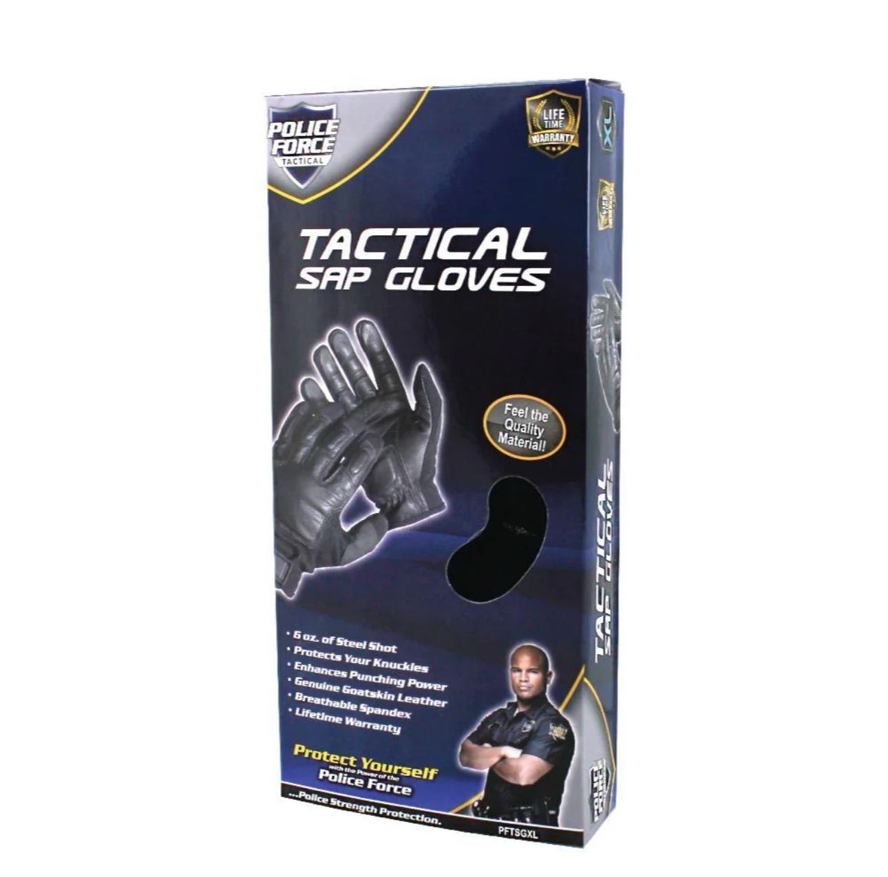 "Maximize your personal defense with Police Force Tactical Sap Gloves. Engineered for law enforcement and security professionals, these gloves feature 6-8oz of steel shot strategically sewn into the knuckle area for superior impact power. Crafted from genuine goatskin leather with a breathable spandex back, they offer the perfect balance of durability, dexterity, and protection. Discreet enough for everyday wear, but powerful enough to end a confrontation."
